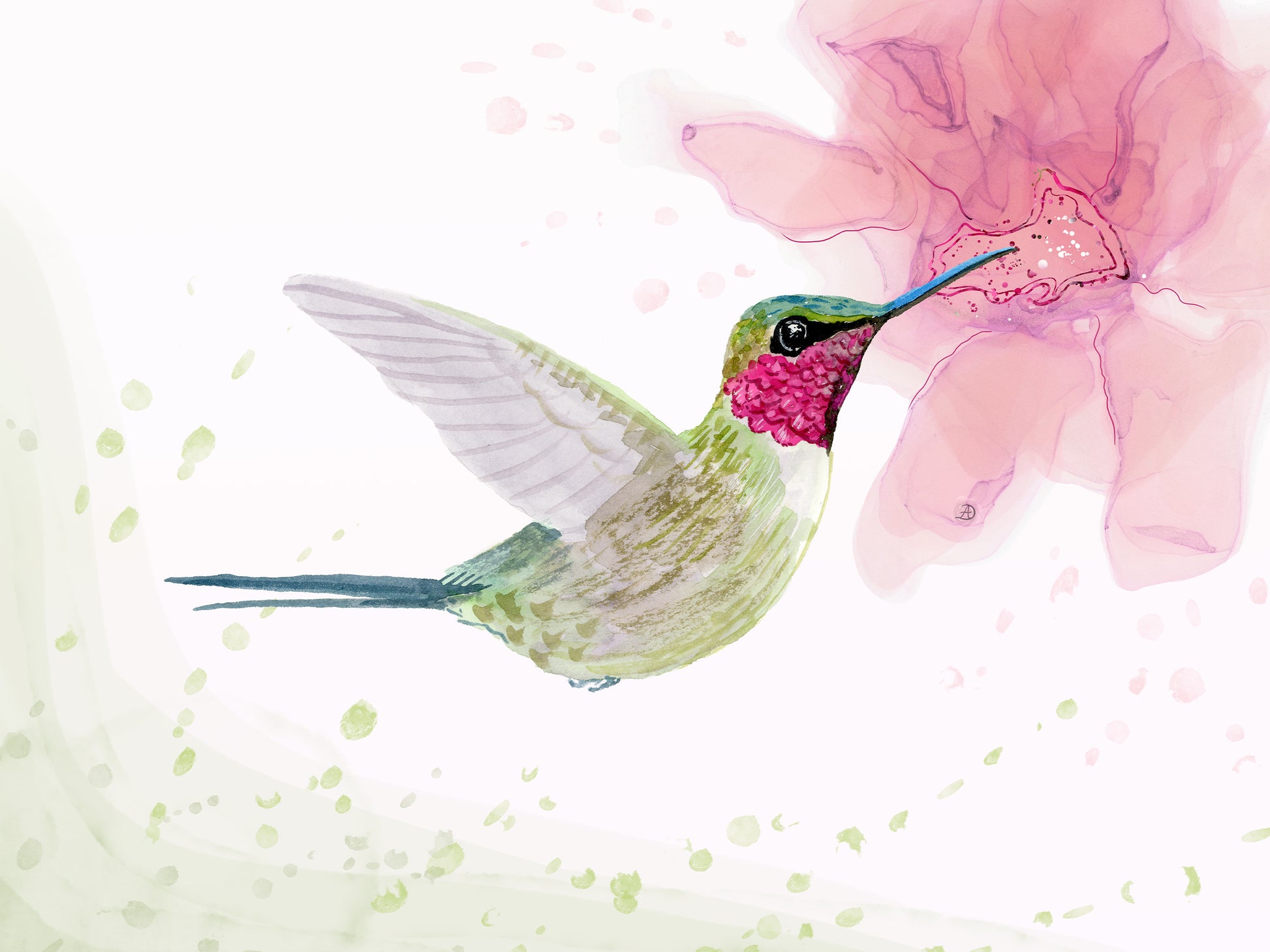 I hope you will love my hummingbird art and treasure it in your home! It brings out its color bouquet in generously lit spaces and goes well with a good range of wall colors, including neutral grays.